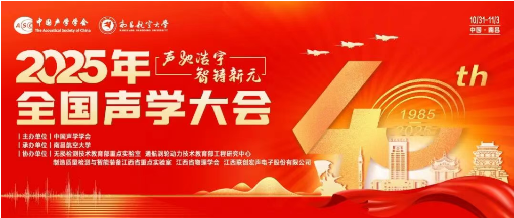 “2025年全国声学大会”将于2025年10月31-11月4日在南昌召开,会议主题为“声驰浩宇,智铸新元”,由中国声学学会主办,南昌航空大学承办。本次大会将继续推动“产、学、研、用”全领域的交流融合互动,审视时代的发展趋势,拓展声学领域的发展空间,宏观论述技术趋势,专题聚焦前沿技术,广泛普及声学知识,展示产业最新成果,打造国内声学领域顶级示范品牌。