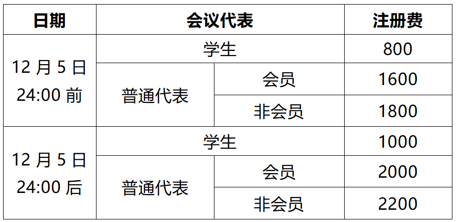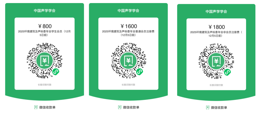 本次学术会议的注册费由中国声学学会统一收取并开具发票,注册费收取标准如下: