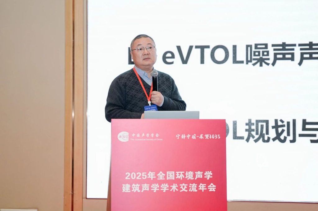上海市环境科学研究院的祝文英分享了《多数据融合的噪声地图技术》,详细介绍了如何通过整合多源异构数据来提升噪声地图的精准度与覆盖范围;南京大学陶建成教授带来了《门底细缝透射声的建模与有源控制》的报告,深入探讨了建筑隔声中的薄弱环节及其有效的解决方案。此外,北京航空航天大学李晓东教授分析了《向“宁静中国”的eVTOL声学挑战与规划策略》。