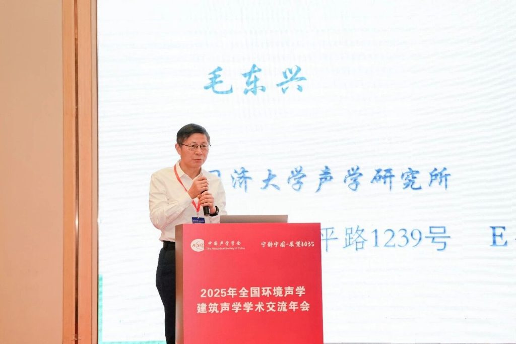 全国声学标准化技术委员会副主任委员、中国声学学会建筑声学分会副主任委员毛东兴教授作《微穿孔吸声结构的理论和应用》报告,分享了微穿孔吸声结构的理论、进展及应用,重点介绍其在环境声学与建筑声学领域的实际应用成果。